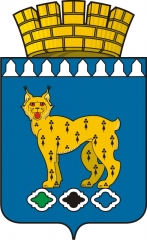 ![]() В лазоревом поле под вершиной опрокинуто-беличьего меха – золотисто-горностаевая стоящая рысь настороже с червлеными глазами и пастью, черными когтями и кисточками на ушах, сопровождаемая в оконечности тремя окаймленными серебром камнями в пояс: зеленым, черным и лазоревым. |