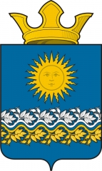 ![]() В лазоревом щите в почетном месте золотое солнце, сопровождаемое внизу двумя узкими волнообразными поясами – серебряным и золотым, прорастающими кнаружи многими ветвями шиповника. |