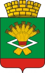 ![]() В зеленом поле червленая оконечность, над которой золотой разделенный снизу надвое сноп, перевязанный червленой лентой и продетый сквозь серебряное, положенное поперек щита веретено. |