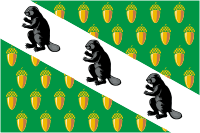 ![]() На зеленом усеянном золотыми желудями щите расположена серебряная перевязь, обрамленная тремя черными стоящими бобрами. Зеленое поле щита и желуди служат главной эмблемой, не только указывающей на современное название поселка и урочища «Высокая дубрава», но также несущей в себе символику природной чистоты и обретения плодов труда. Бобр служит эмблемой желания и умения работать, может выступать как эмблема предусмотрительности. |
